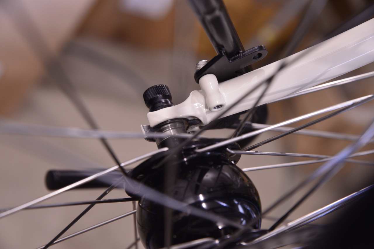 Détail patte avant pour dynamo Son SL sans contact , fausse plaque isolée et conducteur interne à la fourche