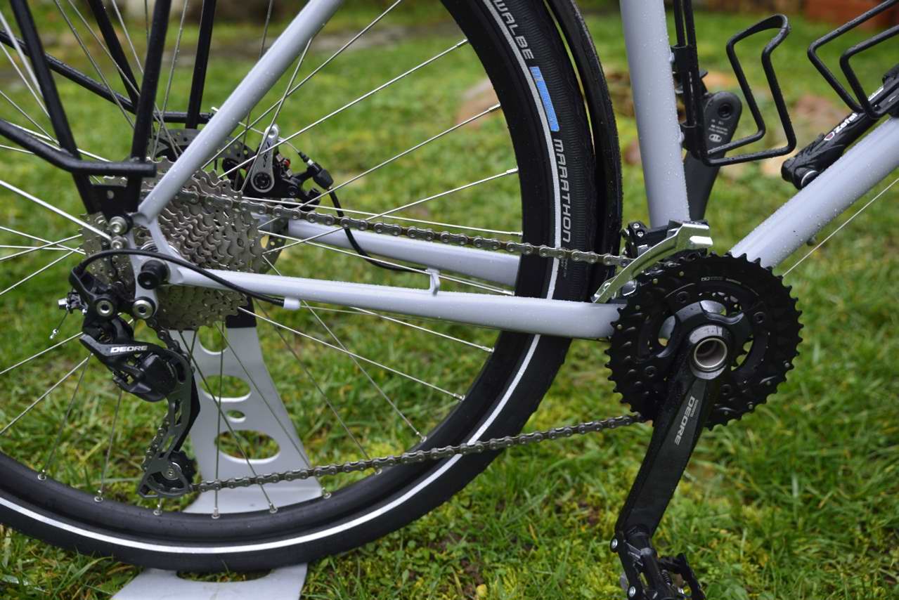 Roues montées main avec moyeu Shimano XT grande flasque pour la résistance à l'arrachement des rayons , option dynamo-moyeu Shutter Précision, jantes DT swiss ou Ryde , Rayon Sapim , pneus schwalbe Marathon