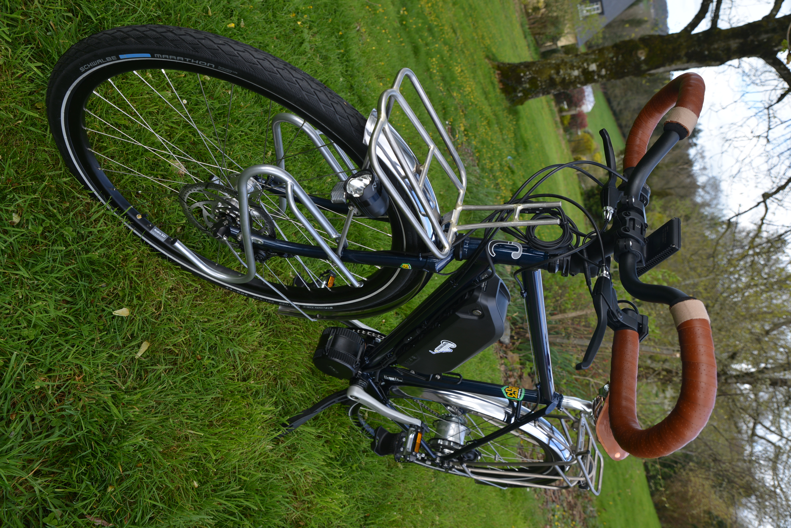 Françoise n'a pas voulu être en reste avec sa vieille randonneuse de 35 ans alors que son époux Hubert venait de passer le pas avec son Cycles Itinérances tout neuf ! C'est la copie mais électrifié d'origine qu'elle s'est offerte, parée d'un beau bleu nuit profond et pailleté