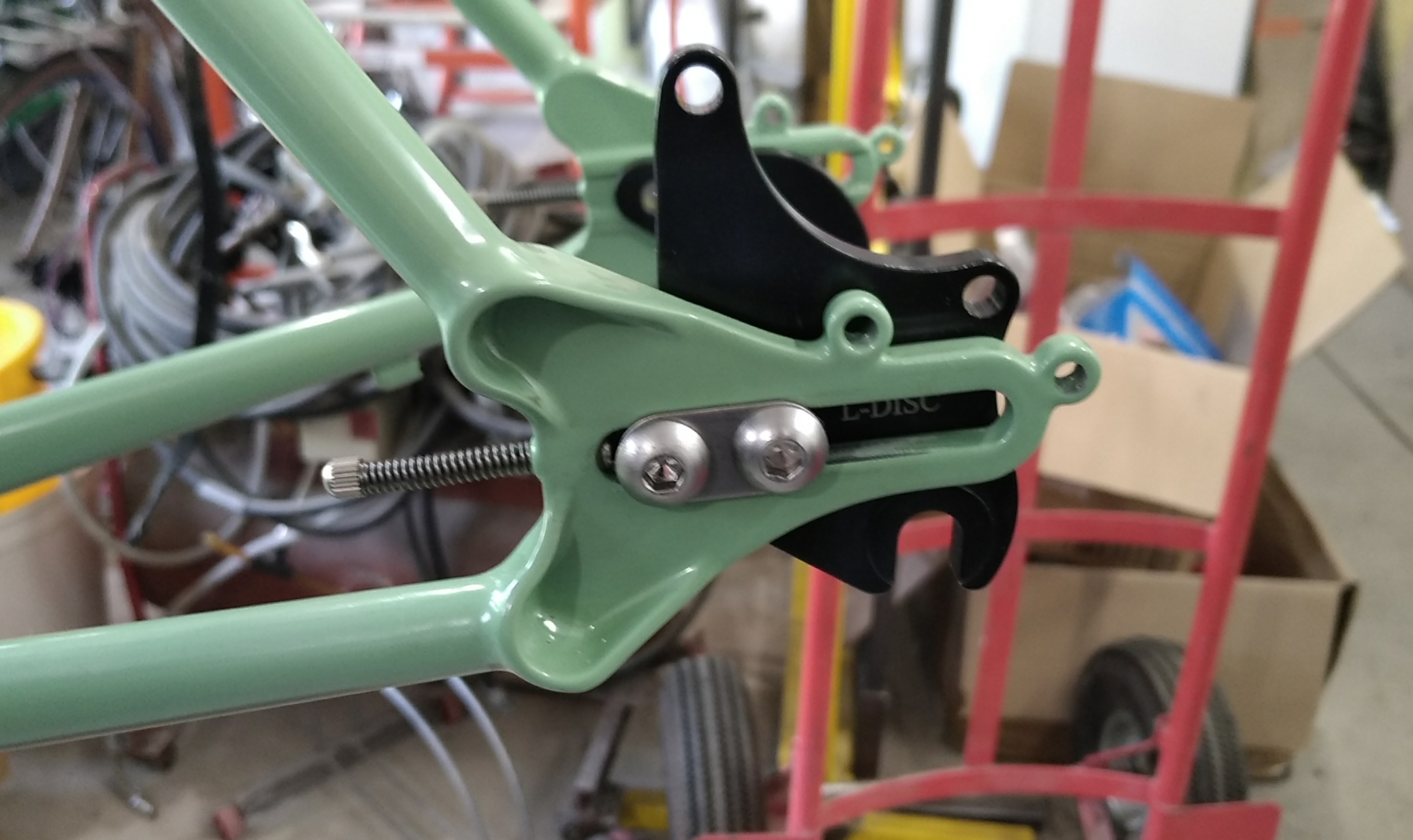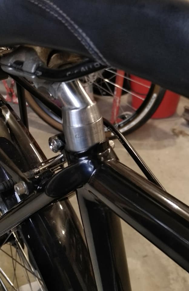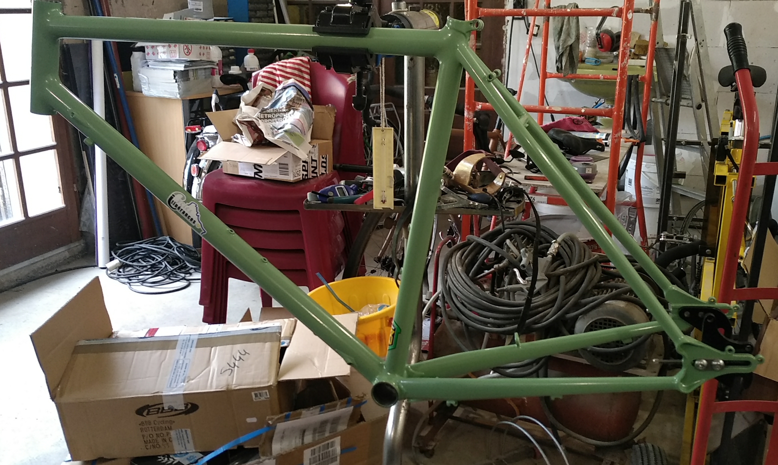 Marie a apporté plusieurs accessoires déjà en sa possession comme le porte-bagages arrière, ses prolongateurs ou sa selle hors d'âge mais qui lui va très bien !