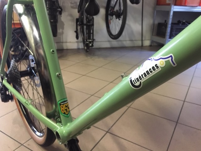 La randonneuse présentée par Cycles Itinérances et pilotée par son constructeur François Coponet est à roue de 27,5' ou 650B avec des pneus de largeur 38mm. Taille de roue et largeur de pneus retenus par les 3/4 des 28 constructeurs qui participaient au concours parce que cela procure un confort sur ces grandes distances et que lorsque gonflés correctement et avec des pneus qui sont très légers maintenant, le rendement est excellent.
