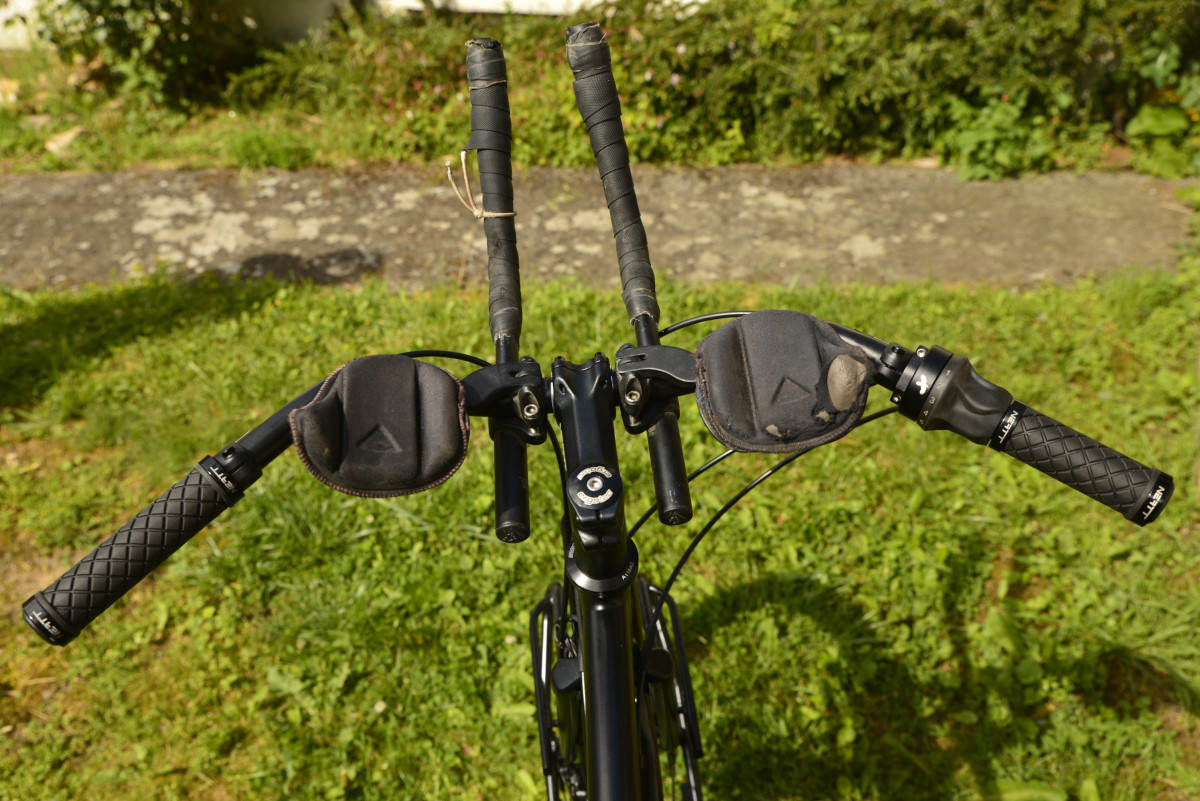 Adepte de la position de conduite triathlon , son poste de pilotage est quelque peu atypique avec un guidon ville et les prolongateurs.