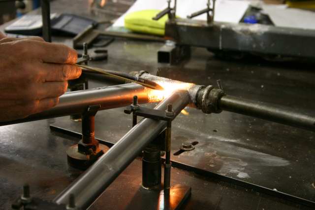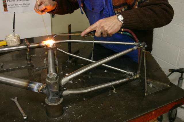 Les cadres sont assemblés par brasage avec ou sans raccords et le métal d'apport est choisi en fonction des caractéristiques métallurgiques des tubes. Certaines brasures contiennent jusqu'à 56% d'argent.